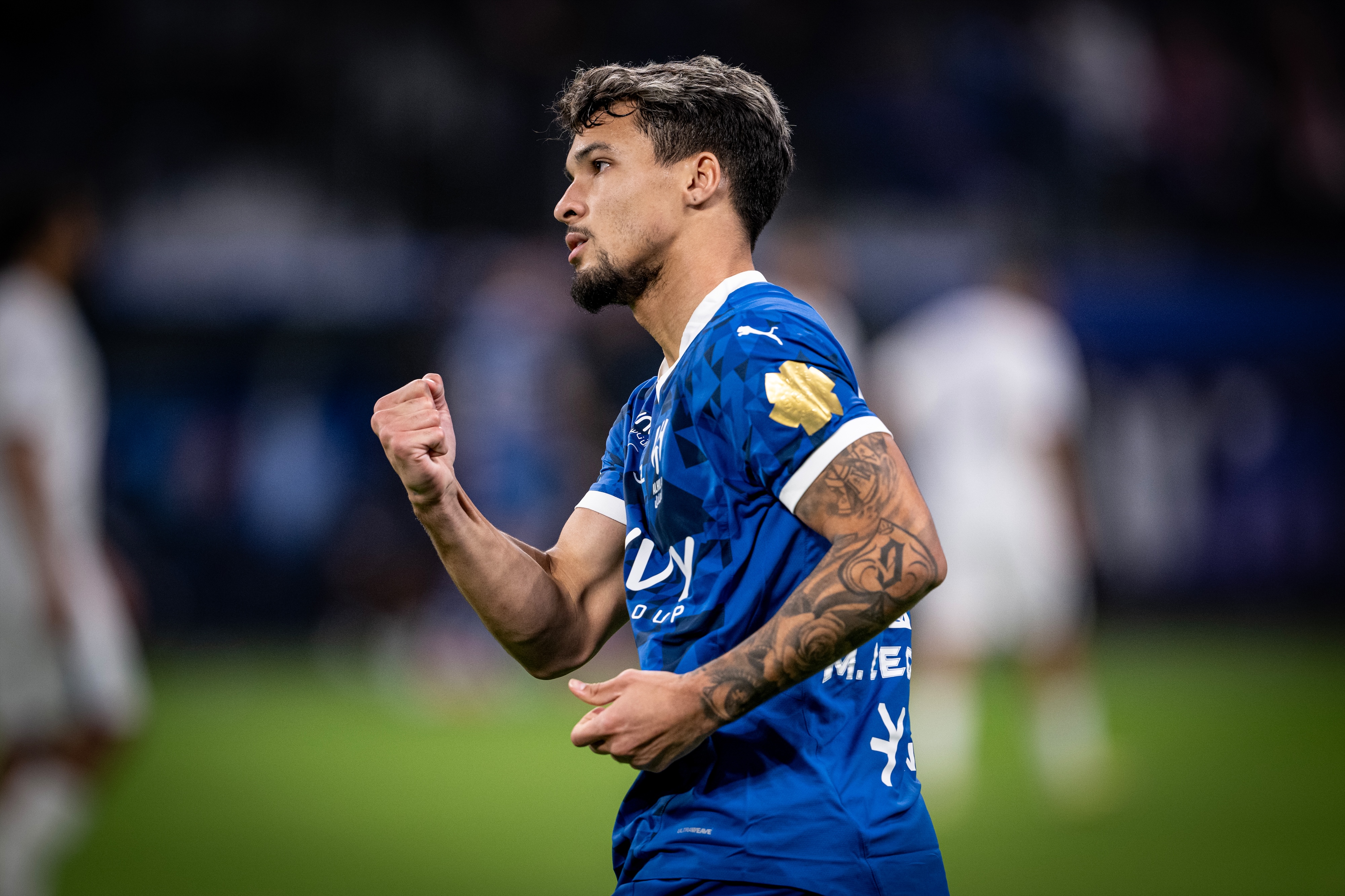Marcos Leonardo celebrates one of his goals, fist-pumping in delight as Al-Hilal pull away in the second half.