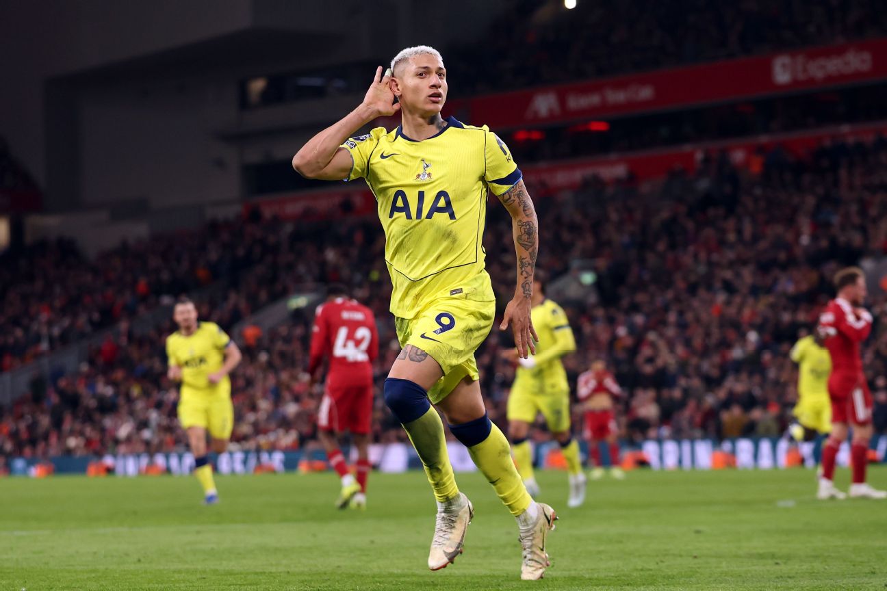 Dominik Szoboszlai gave the Reds the lead with a superb free-kick in the 18th minute, but Richarlison silenced the Kop with a dramatic 90th-minute equalizer, securing Igor Tudor's first point as Spurs manager and ending a run of six successive defeats.